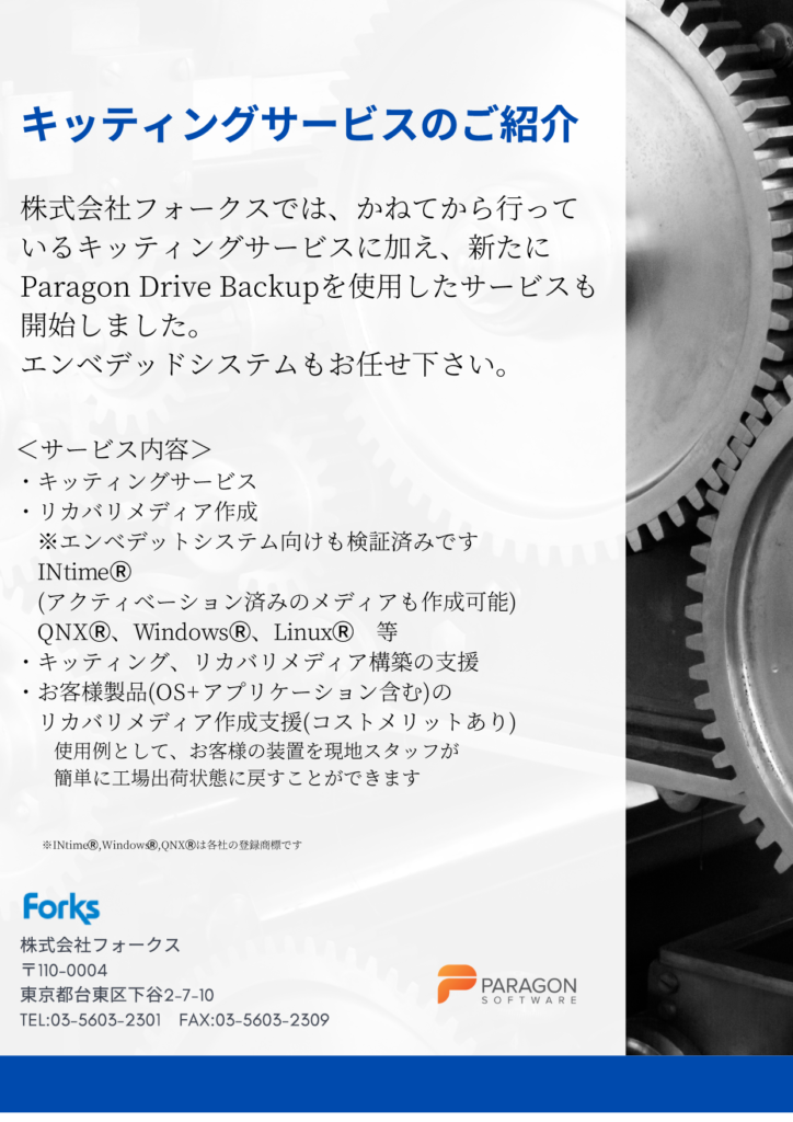産業用PCの量産化に伴うマスターイメージの作成や、展開準備(Sysprep)等を、適宜サポート致します。